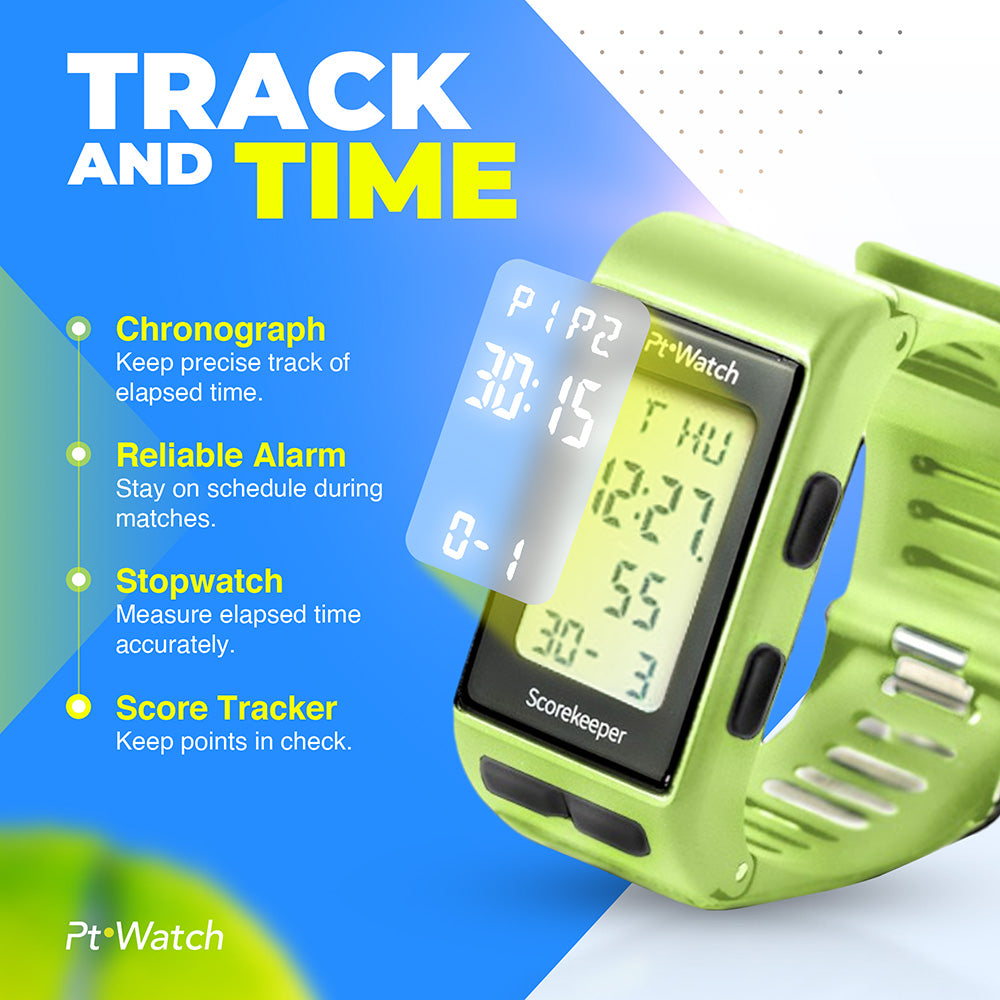 Ya sea que estés en medio de un intenso partido de pádel o de un set de tenis reñido, el Pt Watch te ayuda a realizar un seguimiento de los puntos fácilmente, para que puedas concentrarte en tu juego, no en el puntaje.